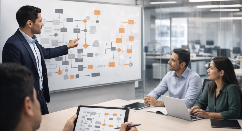 En Evoluciona ayudamos a las organizaciones a analizar sus procesos internos para identificar oportunidades reales de digitalización y automatización. Nuestra consultoría en Transformación Digital no se enfoca únicamente en tecnología, sino en comprender cómo fluye la información dentro de la empresa, dónde se generan cuellos de botella y qué tareas repetitivas pueden eliminarse o simplificarse. A partir de ese análisis, diseñamos una ruta clara y estratégica para optimizar procesos, reducir costos operativos y mejorar la trazabilidad.